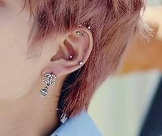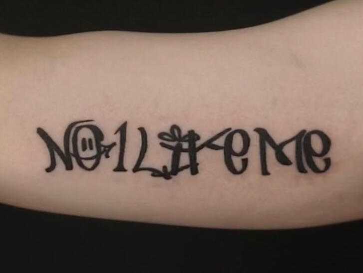 tattoos/piercings: 'no one like me" tattoo on inner right arm, tongue piercing. 8 ear piercings